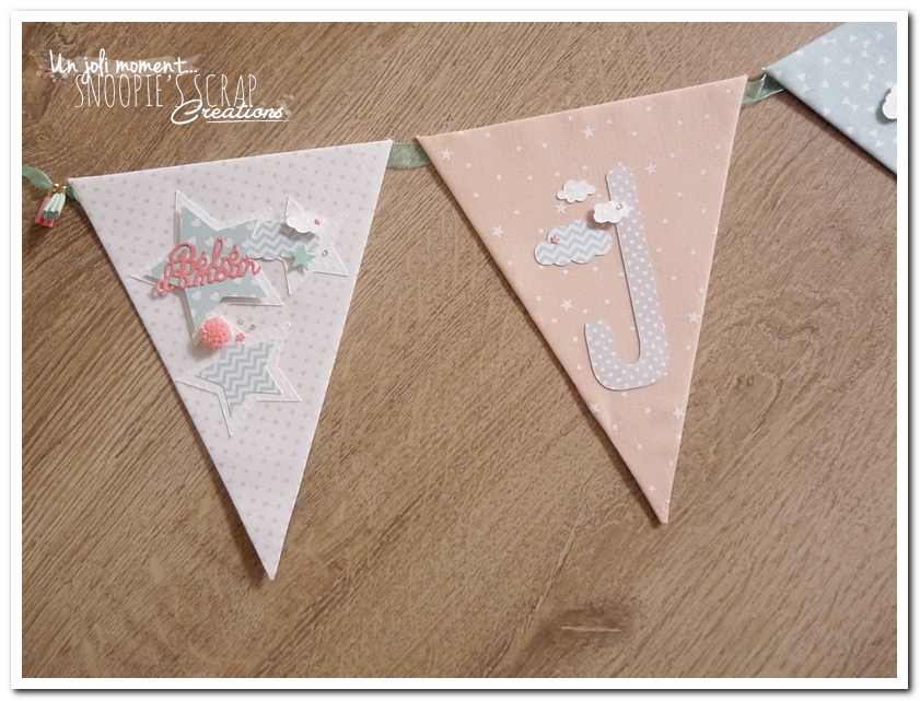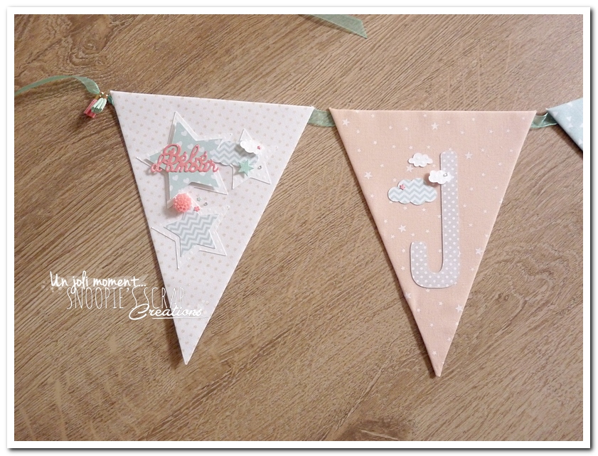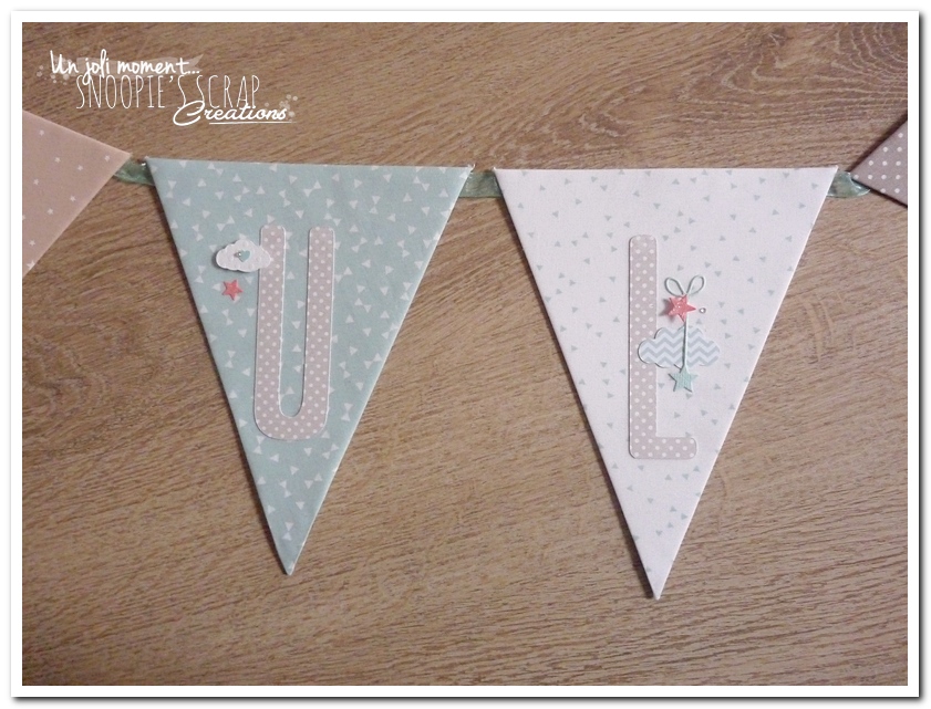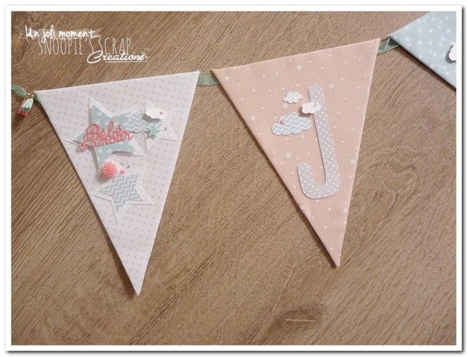 voici donc la petite guirlande de fanions pour Julie, qui accompagnait son gâteau de couches.