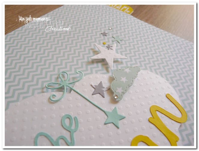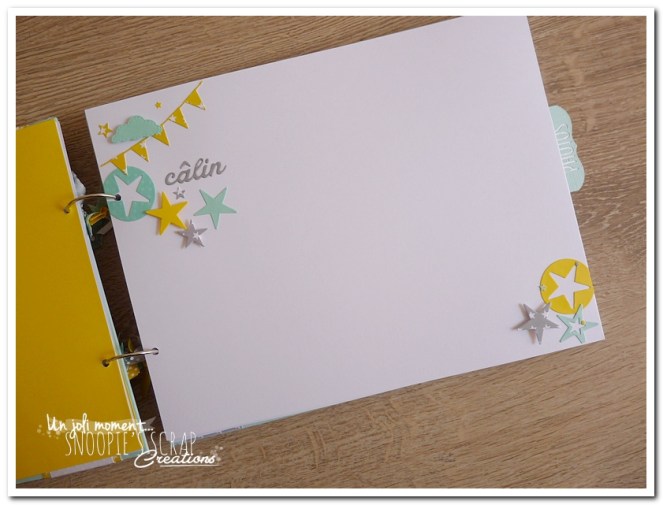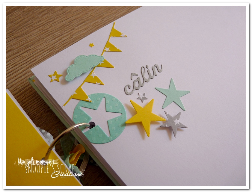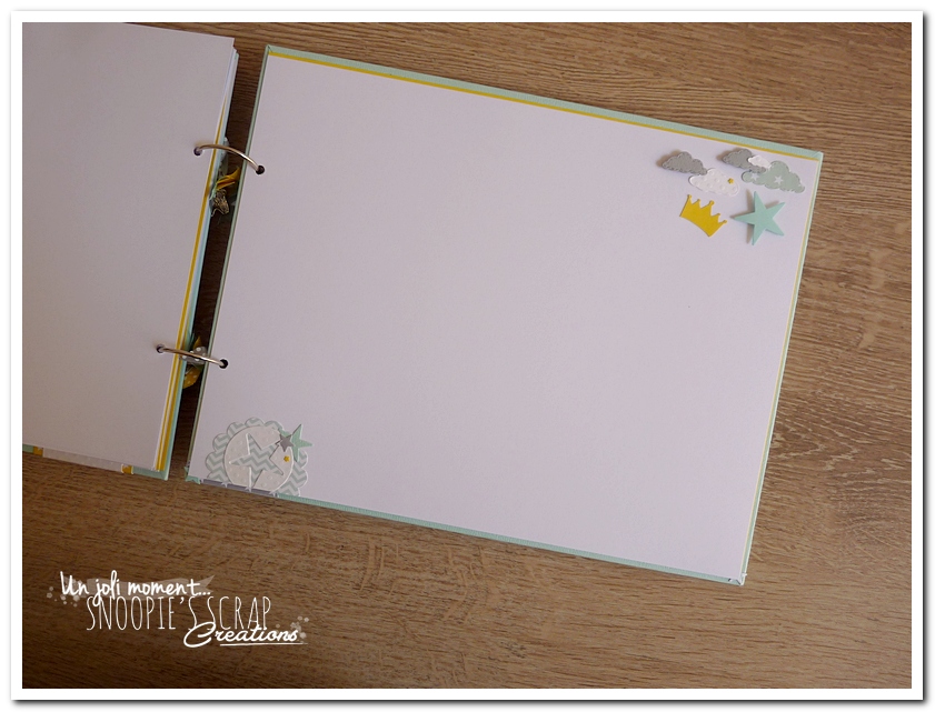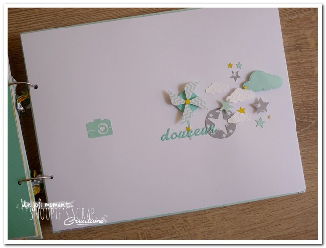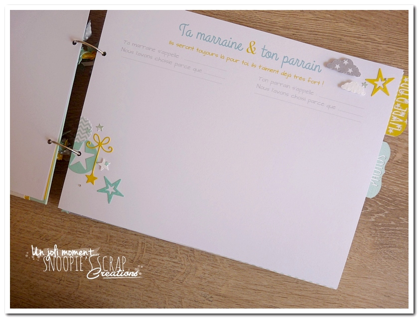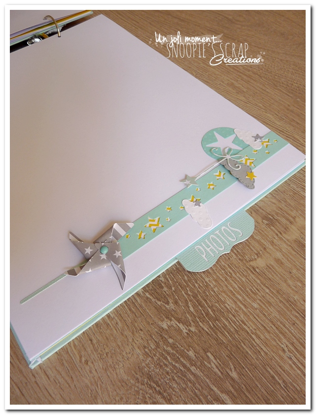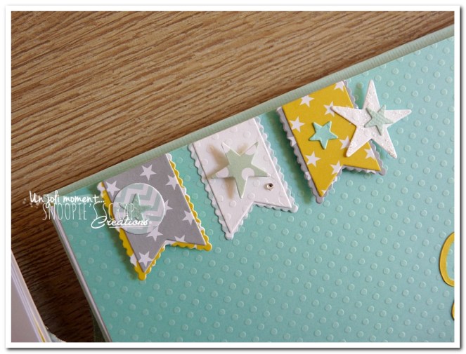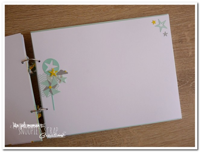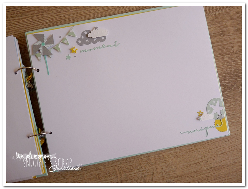 Baptême Johan, Manoa livre d’or, baptême, parrainage civil, mariage, pacs, bleu mint, menthe, vert d’eau, turquoise, blanc, jaune, nuages, rubans, fanions, étoiles, moulins à vent