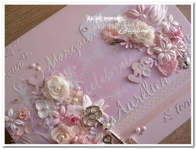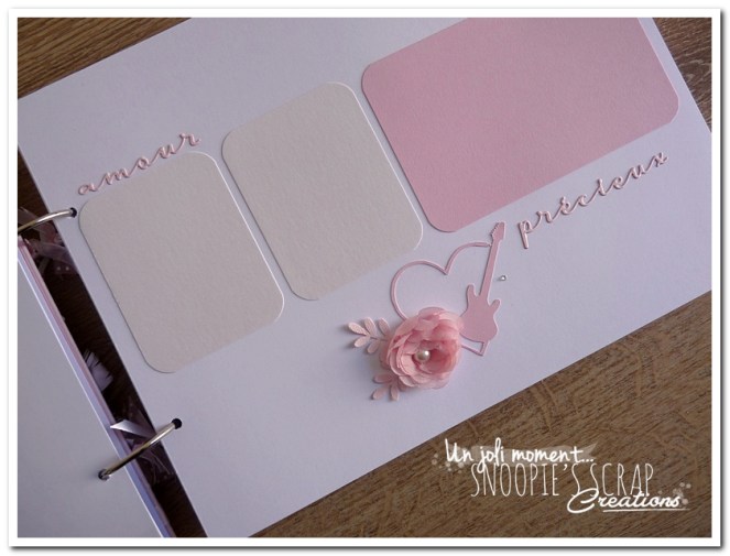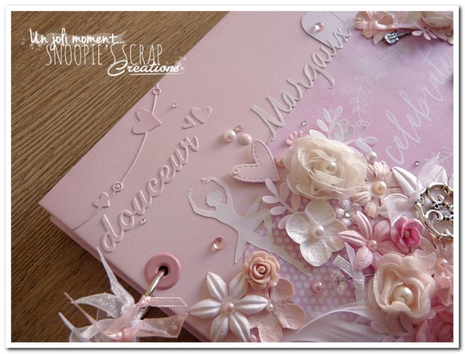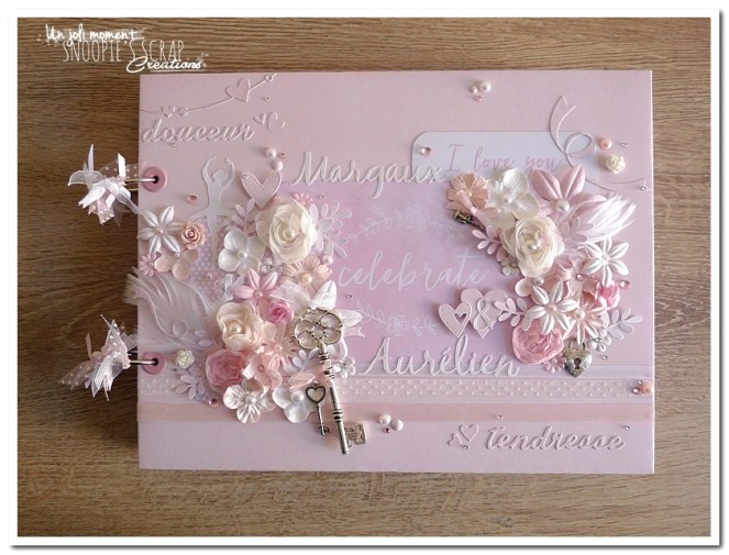 livre d’or mariage, strass, fleurs, romantique, ballerine, danse, guitare, musique, enfants, rubans, blanc irisé, rose, pâle, clair,vieux rose, mariage, fête, perles, strass, vintage, shabby chic, douceur, arabesques, wedding,