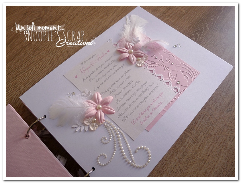 livre d’or mariage, strass, fleurs, romantique, ballerine, danse, guitare, musique, enfants, rubans, blanc irisé, rose, pâle, clair,vieux rose, mariage, fête, perles, strass, vintage, shabby chic, douceur, arabesques, wedding,