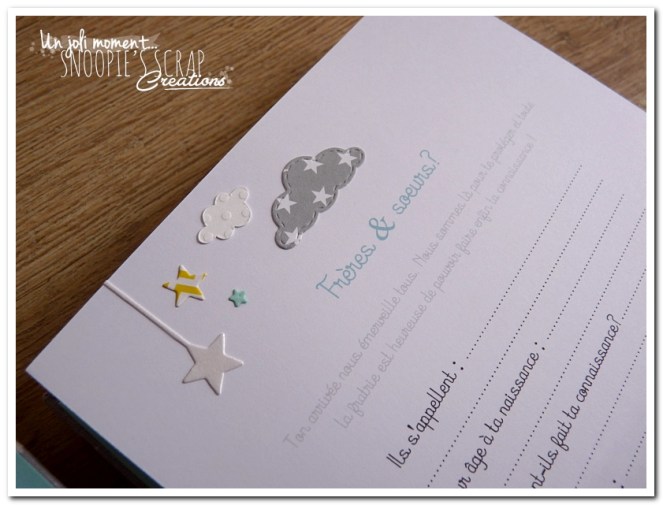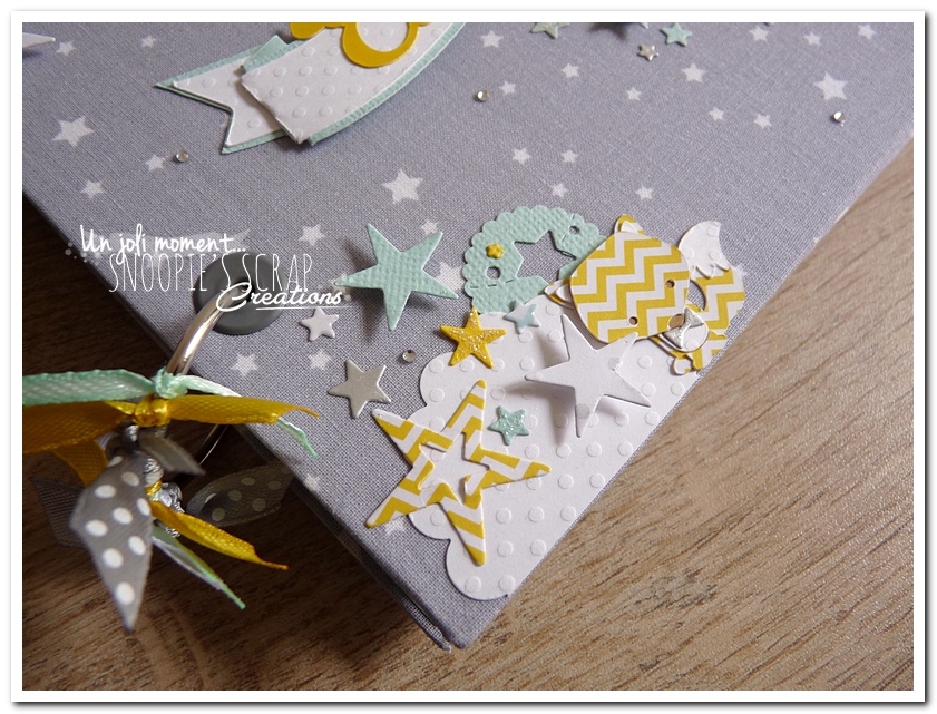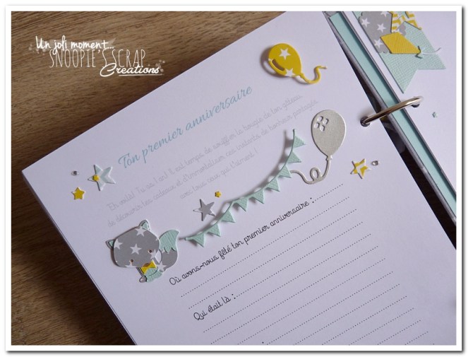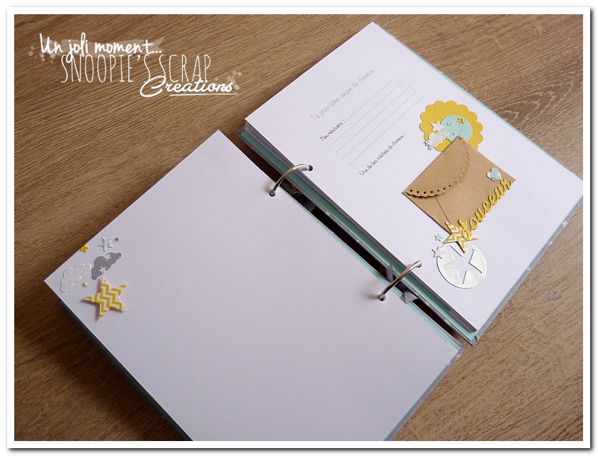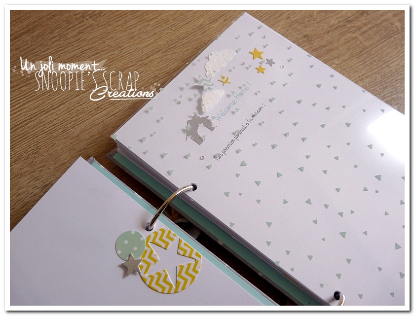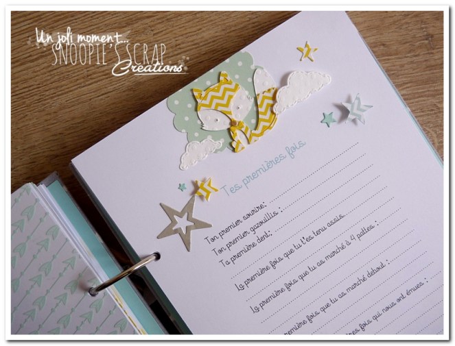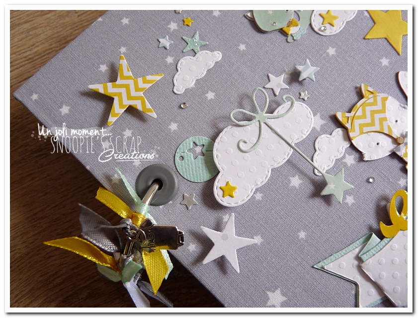 livre de naissance, cadeau de naissance, baby shower, album photo, souvenirs de naissance, maternité, blanc, gris, étoiles, nuages, vert d’eau, jaune, argent, renard, LE GRAND BLEU, tortue, palmes, fox, scandinave, chevrons, Enzo.