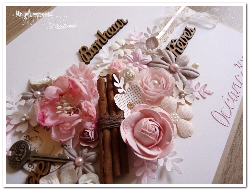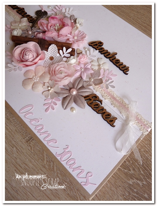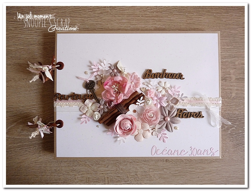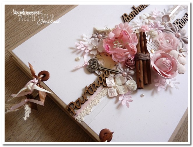 livre d’or, guest book, mariage, wedding, marron cannelle, canelle, vintage, romantique, rétro, dentelle, horloge, fleurs, strass, bois, résine, rose clair, rose pâle, rose poudré, ivoire, beige, crème, douceur, amitié, 30ans, 30 ans, anniversaire, cadeau d’anniversaire, quoi offrir à sa meilleure amie, idée de cadeau trentaine, Océane, album photos, souvenirs photos.