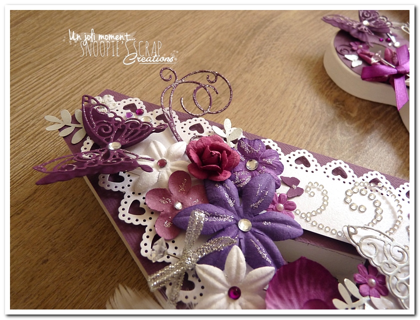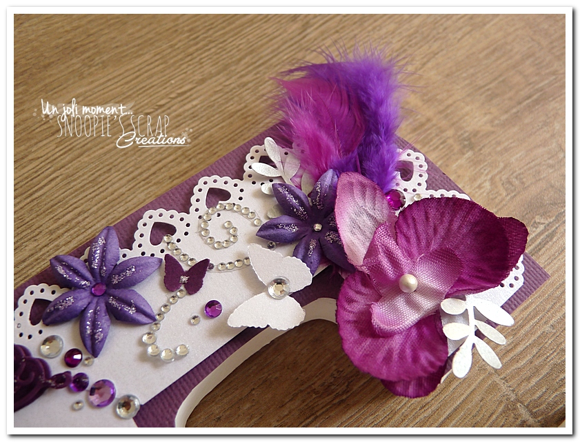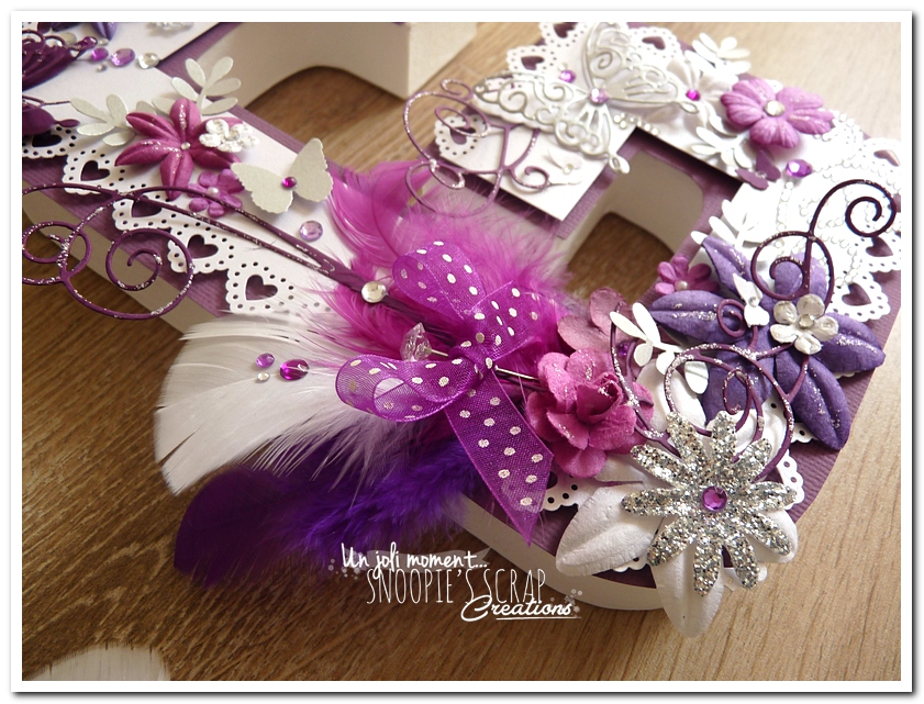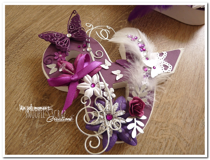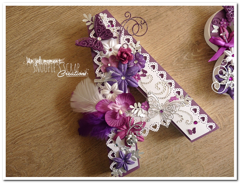 initiales, lettres, décorées, strass, perles, fleurs, pourpre, violet, blanc, argent, feuillage, dentelle, coeurs, adeline & gérald, violet.