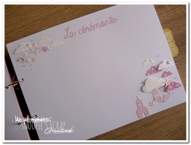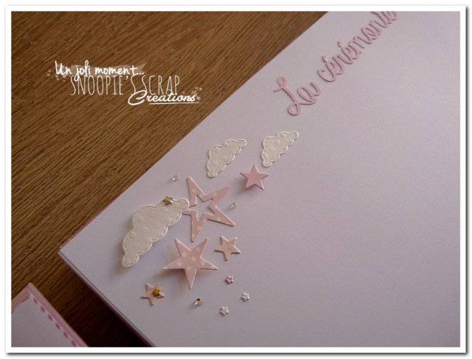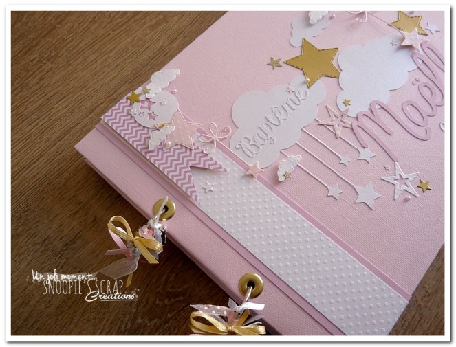 Baptême Manoa Léana Leana livre d’or, baptême, parrainage civil, mariage, pacs, rose, or, doré, blanc, nuages, rubans, fanions, étoiles.