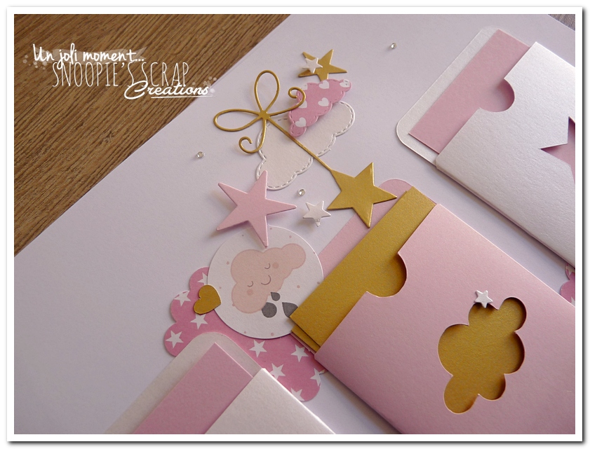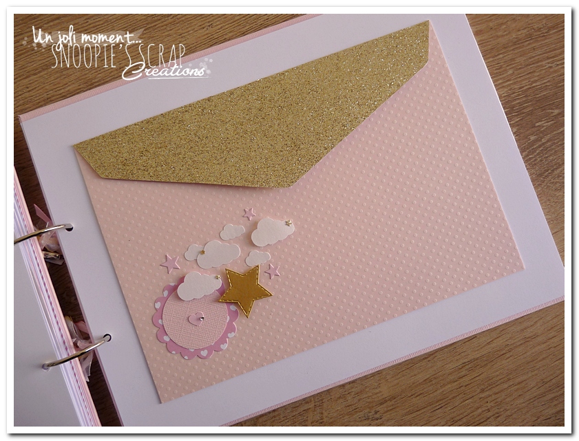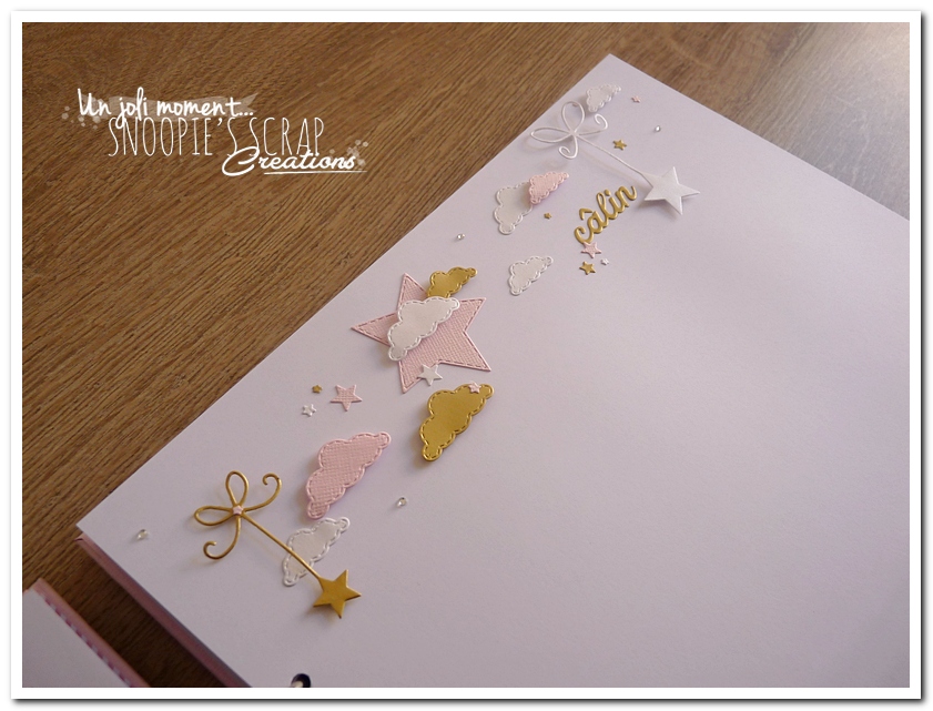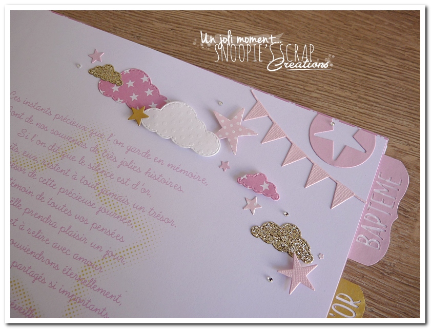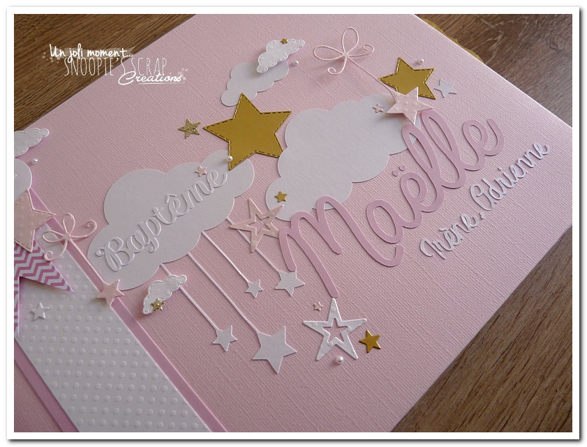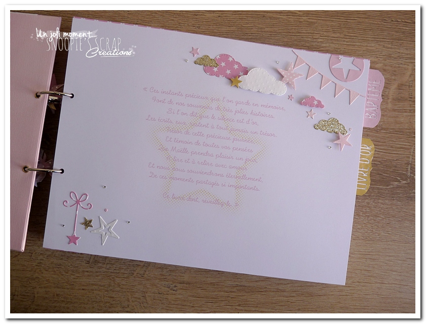 Baptême Manoa Léana Leana livre d’or, baptême, parrainage civil, mariage, pacs, rose, or, doré, blanc, nuages, rubans, fanions, étoiles.