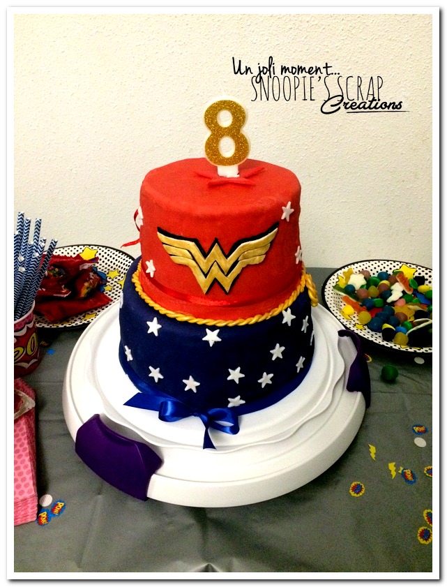 anniversaire wonder woman, super hero, héros, rouge, bleu marine, bleu nuit, blanc, or ,doré, paillettes, tulle, pingouin, sapin, gâteau, 8 ans, 7 ans, 6 ans, 5 ans, 10 ans, 9 ans, DC comics, Marvel, fille, garçon, Maélia 8 ans.