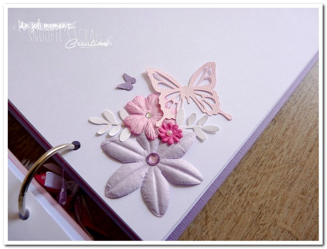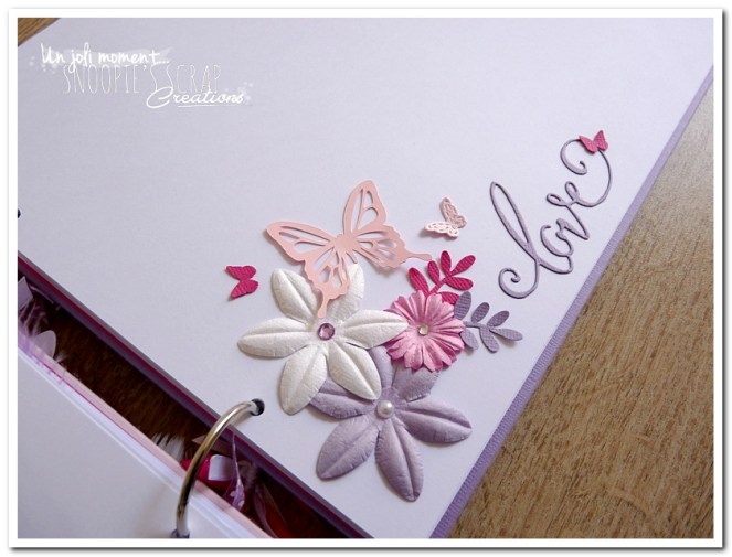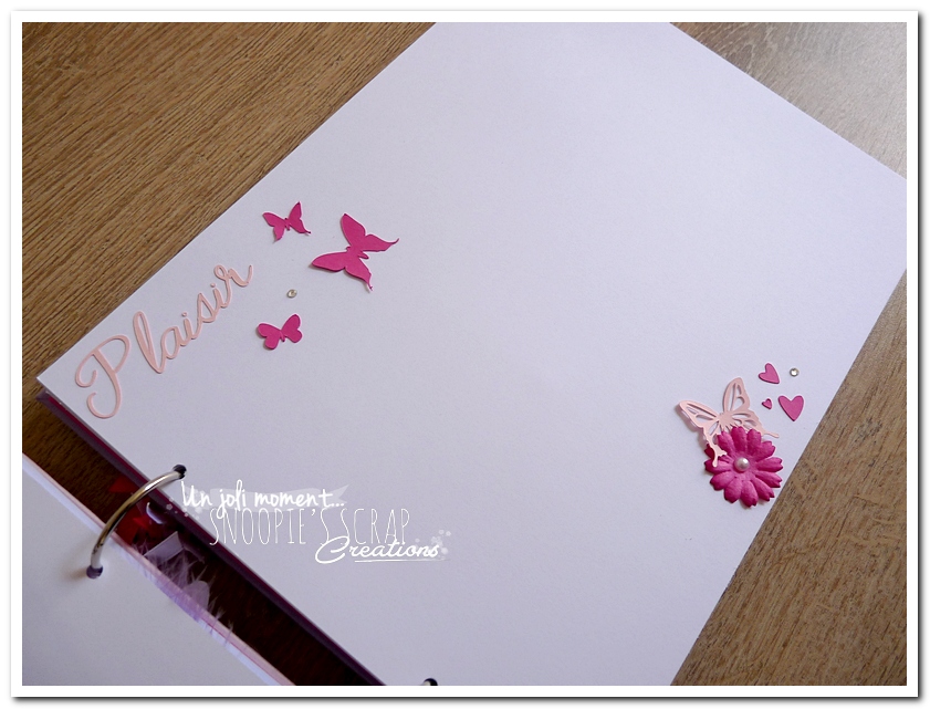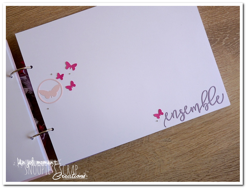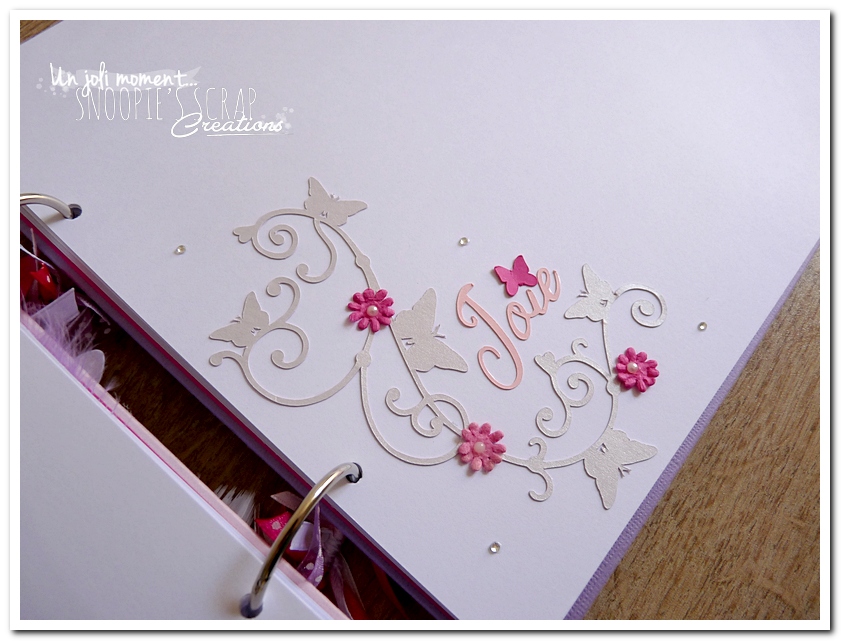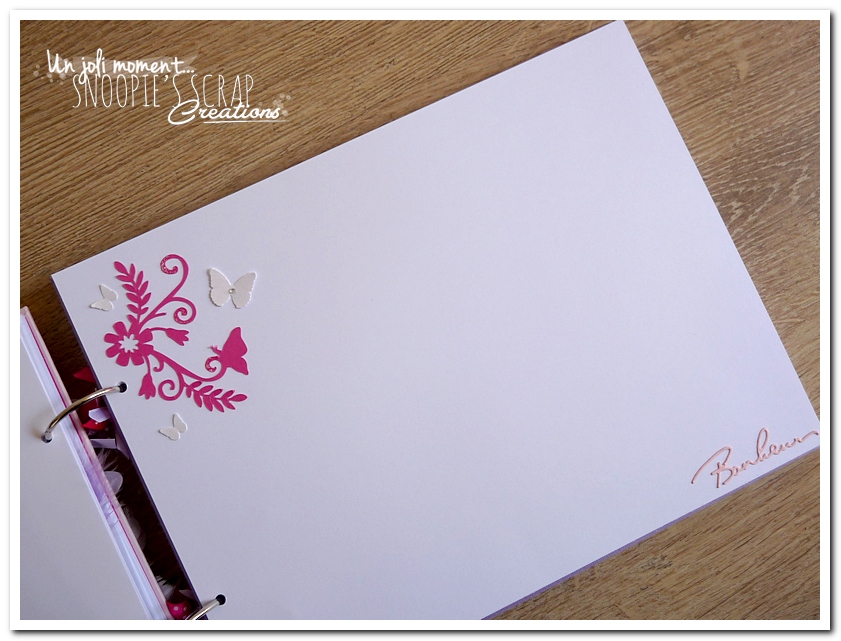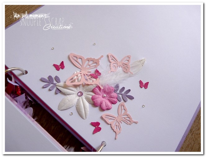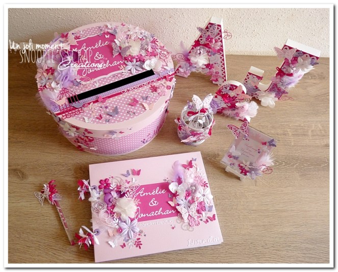 livre d’or, mariage, pacs, mariage Amélie & Jonathan, fushia, rose, blanc & parme, papillons, fleurs, douceur, romantisme, romantique, arabesques, plumes, roses, fleurs, strass, paillettes, champêtre chic. ENJOY
