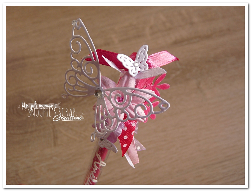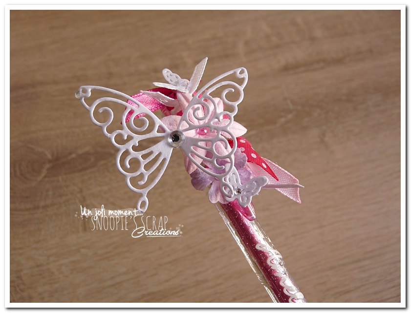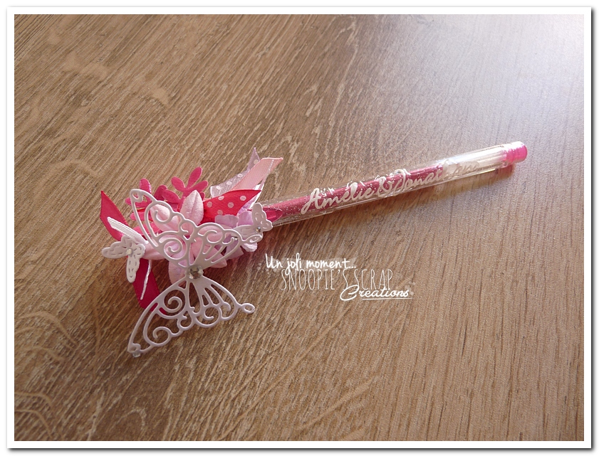 stylo décoré & personnalisé, mariage, pacs, mariage Amélie & Jonathan, fushia, rose, blanc & parme, papillons, fleurs, douceur, romantisme, romantique, arabesques, plumes, roses, fleurs, strass, paillettes, champêtre chic.