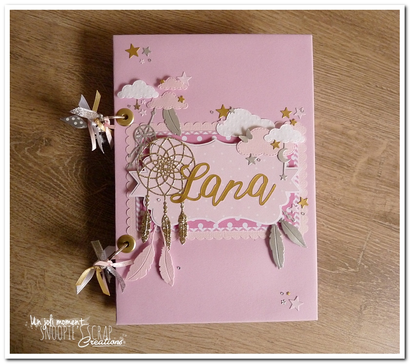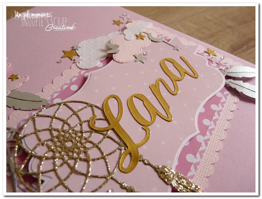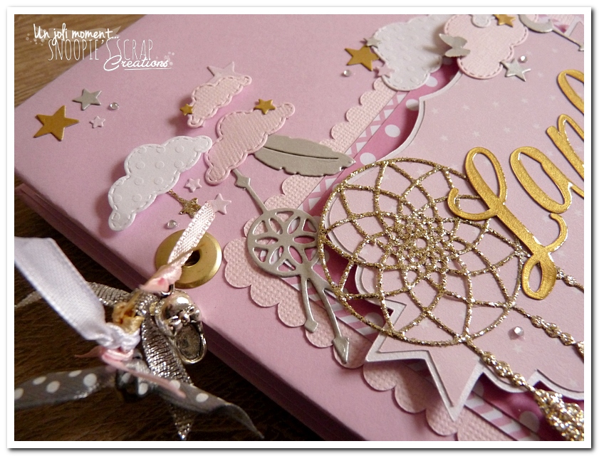 album photos naissance, un an, anniversaire, bébé, cadeau de naissance, fille, garçon, girly, rose, fushia, paillettes, or, doré, dreamcatcher, dream catcher, attrape-rêves, attrape rêve, fête, babyshower, Anna.