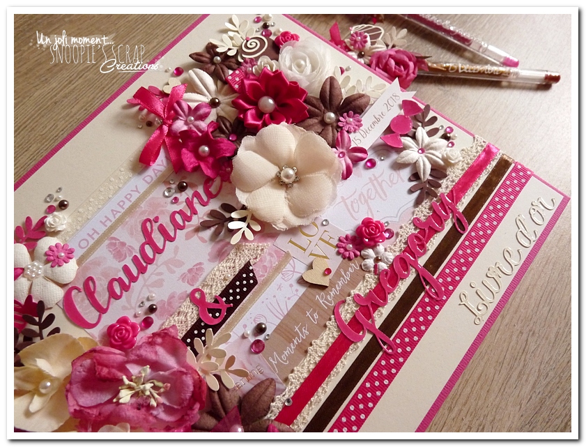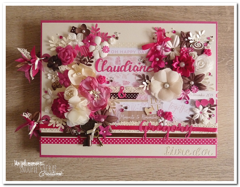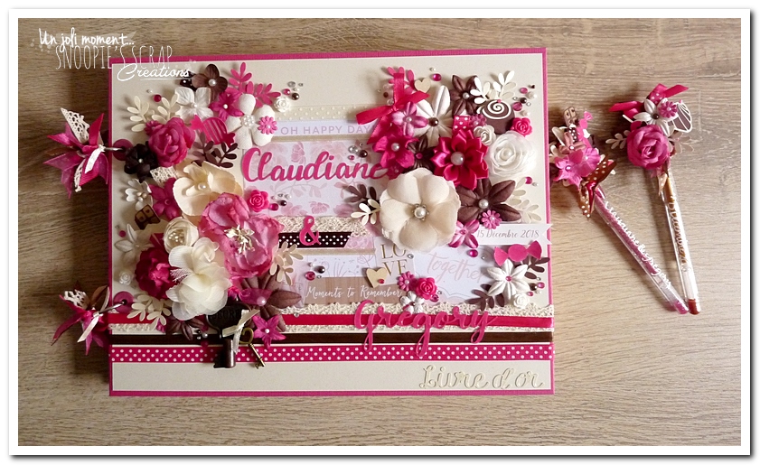 romantique chic fleuri, gourmandises, rose fushia, fuchsia, fuschia, ivoire, blanc cassé, chocolat, marron, bonbons, fleurs, strass, perles, roses, pivoines, orchidées, arabesques,romantisme,mariage, pacs, mariage Claudiane & Grégory, livre d’or mariage, mariage, fête, wedding, Pages spéciales. FORMULE LOVE