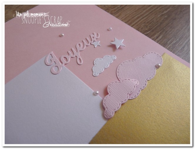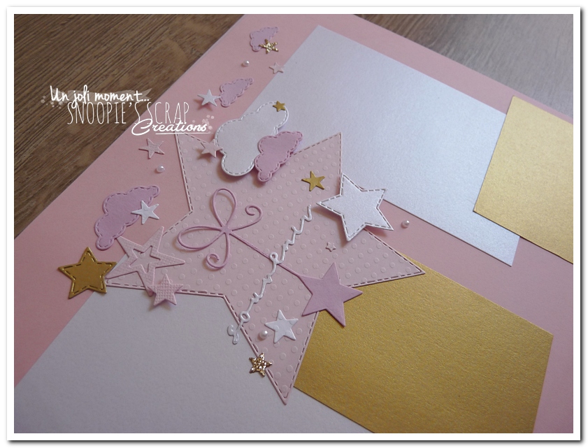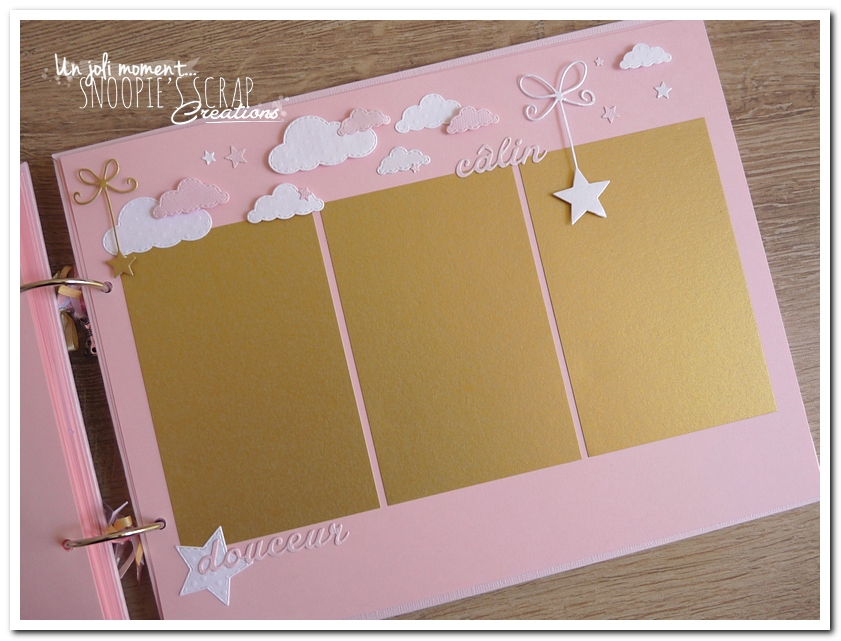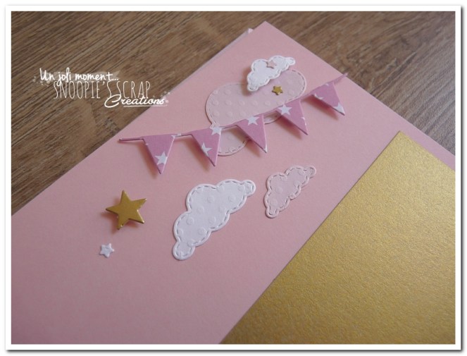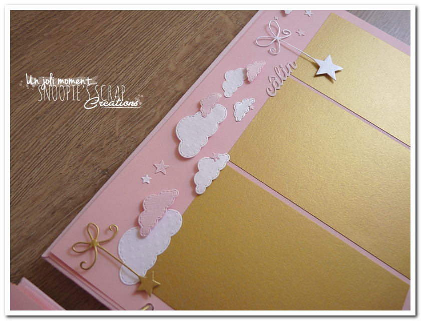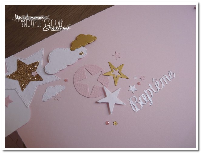 Baptême Meï-Lyn, blanc cassé,parrainage civil, mariage, pacs, rose, or, doré, blanc, nuages, rubans, fanions, étoiles, livre d’or.