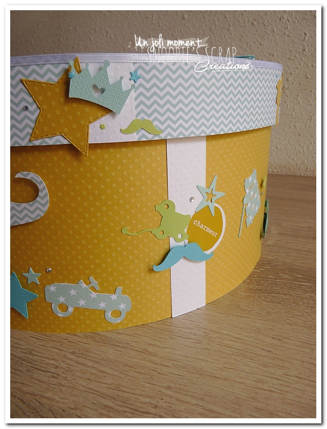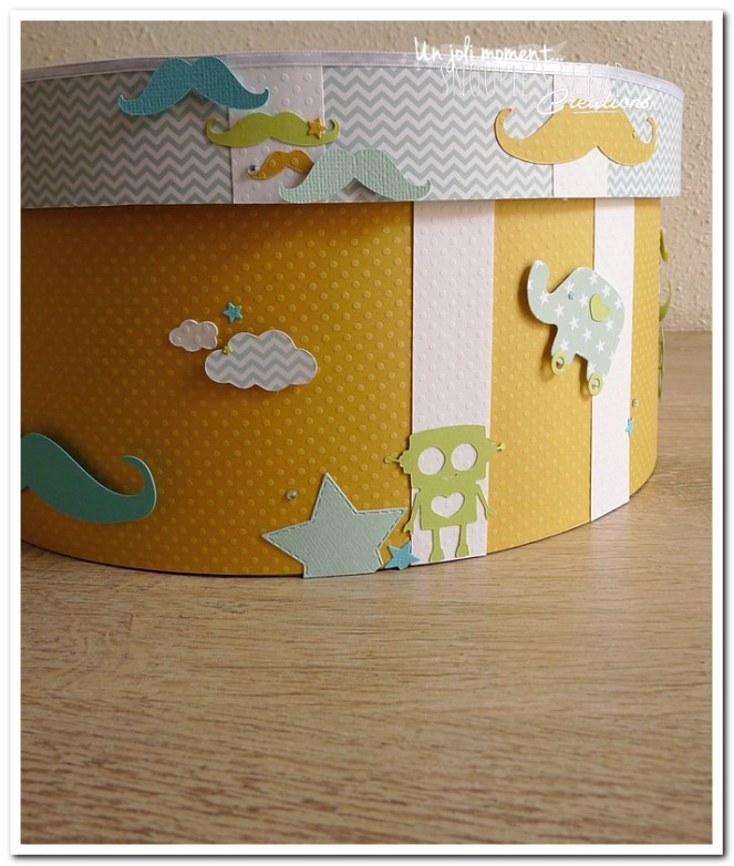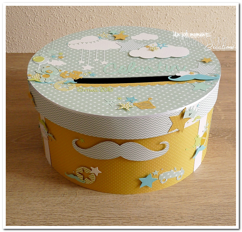 Tirelire, urne, boîte à rêves, boîte à voyage, Baptême, bapteme religieux, baptême civil, parrainage civil, Célestin, Celestin, aqua, moustache, turquoise, vert d’eau, vert anis, jaune moutarde, chevrons, étoiles, jouets, voiture, peluches, ours, ourson, nounours, cadeau bapteme garcon, garçon, petit boy, ptit mec, pois, canard. URNE RONDE.