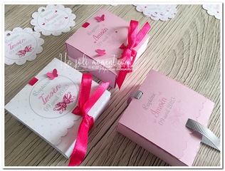 Ralala que d’émotions en ouvrant le colis!! Comme la 1ere fois, j’avais les larmes aux yeux. C’est vraiment magnifique encore plus beau en vrai qu’en photos. Je vous l’avais déjà dis, vous êtes vraiment très douée, vous faites un travail minutieux, appliqué, tout est parfait, comme on le voulait. Tous les petits détails qui ont leur place dans ce faire-part. J’ai hâte de les distribuer et de voir la réactions des gens. Le colis est soigné, bien emballé dans du joli papier, du ruban pour la boîte, les écritures et décos emballées individuellement avec de belles étiquettes. Franchement c’est super!quel professionnalisme !