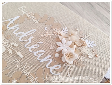 Je continu avec le stylo personnalisé et décoré pour remplir le livre d’or du baptême d’Andréane de jolis petits mots.