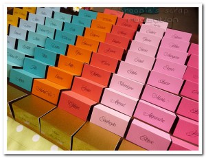 Hello, voici les étiquettes que Laëtitia souhaitait positionner sur ses bonbonnières pour y noter le nom des gourmandises s’y trouvant dedans. Elles peuvent également servir de marque-places, à positionner dans les assiettes des convives, sur la serviette par exemple. * Couleurs : mix de couleurs pep’s & pastels : rose, fushia, bleu, vert d’eau/aqua, violet,… Lire la suite Papeterie Candy Bar – Etiquettes bonbonnières – Lola & Justine