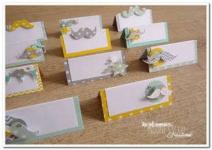 Bonsoir, des étiquettes marque-place/porte-nom à poser : soit sur une sweet table pour mettre votre candy bar en valeur et annoncer les goûts des douceurs dans les bonbonnières soit à table en porte-nom d’invité * Couleurs :  vert d’eau, jaune, blanc & gris Fil conducteur : Moustache (étoiles,  fanions, nuages, chevrons, pois…) ♥ Le mot de Céline,… Lire la suite Etiquette Porte-nom Augustin