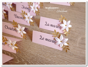 Bonjour, je termine avec les marque places, porte-noms des invités! ♥ Couleurs : Rose pastel, blanc/blanc cassé & or Thématique : romantique chic fleuri ♥ ♥ Quelques photos envoyées par Camille : (cliquez sur les images pour les agrandir) ♥ Retrouvez  les stylos , l’urne ,  les menus & le livre d’or :  Le mot de Camille :… Lire la suite Marque-places Camille & Grégory