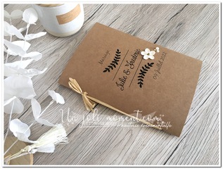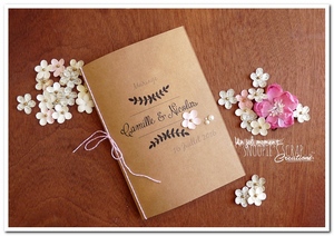 Hello, Une version similaire de ceux de Camille & Nicolas avec une ficelle remplacée par du raphia & des fleurs dans des tons crème. ♥ Retrouvez également d’autres versions de ce livret de messe : livret de messe – variantes livret de messe – Camille & Nicolas ♥ Les couleurs & fil conducteur : vanille/crème &… Lire la suite Livrets de messe – Sandy & Audric