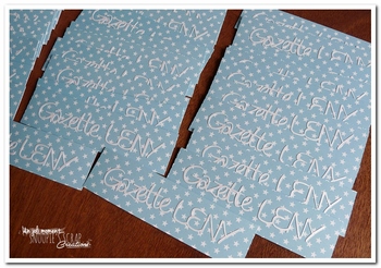 Bonjour, Comme promis voici 2 autres versions des bandeaux pour gazette/livret de messe… * Une version fond étoilé avec le texte ajouré, collé sur un papier blanc & une version sur fond uni avec le texte collé dessus. ♥ Couleurs : argent, blanc & bleu + turquoise Thématique : gourmandise, bonbons, étoiles ♥ – version gazette… Lire la suite Bandeaux décoratifs pour Gazette Baptême – autres versions