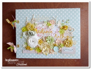 Bonsoir, je continue dans les mariages avec le livre d’or de Sandrine & Oneal! Des couleurs tout à fait inédites pour moi et des réalisations que j’ai beaucoup apprécié réaliser! * Un livre très complet pour un grand mariage, donc bien plus épais du fait des nombreuses pages, cartes & décorations. Avec emplacements photos photomaton… Lire la suite Livre d’or Sandrine & Oneal