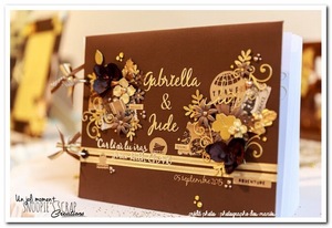 Bonsoir, On change de couleurs pour des tons de violet. Ce livre d’or est basé sur celui de Laetitia & Anthony . Une partie cartes & enveloppes ainsi qu’emplacements pour mots (sous forme de cadres baroques) & une partie destinées aux photos (avec coins photos, afin d’y déplacer les photos à leur guise et facilité… Lire la suite Livre d’or Séverine & Jean-Michel