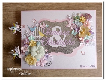 Bonsoir, voici le livre d’or de Vanessa & Christophe, inédit de part ses couleurs 🙂 ♥ Couleurs : tons pastels : rose, bleu, vert d’eau/menthe, jaune, parme & gris argenté pailleté Thématique : romantique, papillons, cage à oiseaux, strass & paillettes ♥ Le mot de Vanessa : « Sophie, vous avez de l’or dans vos mains.… Lire la suite Livre d’or Vanessa & Christophe