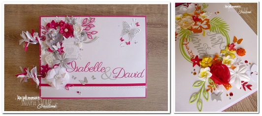 Bonjour, voici le livre d’or d’Elise & Benjamin, sur la base de Laetitia & Eric. ♥ Couleurs : blanc fushia & gris Thématique : fleurs (bulles & ronds en touches) & boutons ♥ attention : le support n’existant plus, celui-ci a été remplacé par un autre support, par exemple, vous trouverez ICI le même modèle… Lire la suite Livre d’or Elise & Benjamin