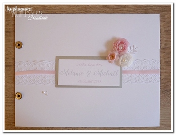 Bonjour, quelques variantes non retenues pour la couverture du livre d’or de Mélanie & Mickaël. * Couleurs : rose & blanc, touche argentée Thématique : romantique, sobre, chic & épuré – dentelle, fleurs & perles/strass ♥  livre d’or, mariage, wedding, guest book, invités, strass, perles,  rose, gris, argent, ruban, paillettes,  romantique, sobre & chic, romance,… Lire la suite Livre d’or Mélanie & Mickaël – variantes