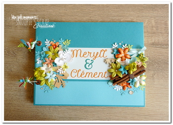 Bonsoir, aujourd’hui le livre d’or de Meryll & Clément, sur la base de celui d’Aneline & David. ♥ Couleurs :  turquoise, pétrole, vert anis, blanc & orange Thématique : îles, exotique ♥ Le mot de Meryll & Clément : « Bonjour tout est tres joli. Bonne journée » Retrouvez le livre d’or, le stylo & le porte-alliances… Lire la suite Livre d’or – Mariage Meryll & Clément