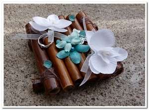 Bonjour, Lorsque j’ai réalisé le porte-alliances exotique d’Anaïs & Alexis, j’avais fait 2 autres essais, dont un trop grand, qui peut servir de décoration de table ou décoration de table de livre d’or/tirelire/cadeaux invités, dragées… etc. Le 1er présenté peut être porté dans la main: Le second, plutôt en décoration de table : A bientôt!… Lire la suite Porte-alliances & Décoration Exotique