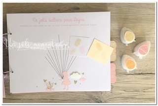 Voici la page à empreintes (ballons) présente dans le livre de Baptême de Leyna * Couleurs : blanc, rose, or/doré & tons naturels (beige, kraft) (beige, ivoire, crème, kraft) Fil conducteur : douceur, moulins à vent, fanions, dentelle, fleurs, feuillages, bois, coeurs, étoiles, nuages…. ♥ Possibilité sans trous pour être ensuite encadrée. POUR PASSER COMMANDE ——->… Lire la suite Page à empreintes Ballons – Baptême – Leyna