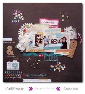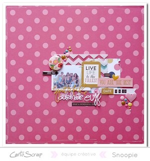 Bonjour, voici ma dernière page pour Cartoscrap 😉 Découvez bientôt (si ce n’est déjà fait au salon de Toulouse) les Dies Cartoscrap (trop beaux!!) et les nouveaux tampons et badges!! 🙂 A bientôt! Liste du matériel : cardstock Bling Bling – or rose, pack 30×30 – My Mind’s Eyes – My Story, mini pack 15x15cm – Echo Park… Lire la suite Cartoscrap – page Life is good