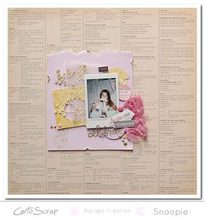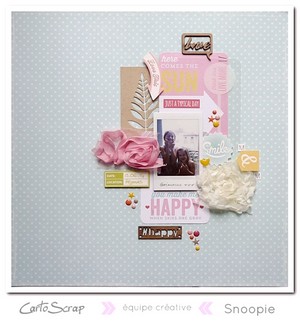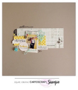 Bonjour, Et hop nous entamons la 4eme semaine du jeu de l’été! 🙂 Avec un lift et un défi carte. Et voici ma page, lift de la superbe page de Cathy. Photo prise par notre super photographe : Ela & The Poppies! Jeu de l’été, page de scrap, DT Cartoscrap, scraplift