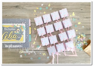 Baptême Célia – L’ensemble des réalisations. Récapitulatif des éléments déjà montrés. ♥ Couleurs : vert d’eau/aqua – gris – blanc, jaune & rose – couleurs pastelles Fil conducteur : Champêtre floral moulins à vent, champêtre, petits animaux, papillons, fleurs, étoiles… ♥ L’ensemble :  Le livre d’or : Les confettis :    Les boîtes à dragées… Lire la suite ENSEMBLE Baptême Célia
