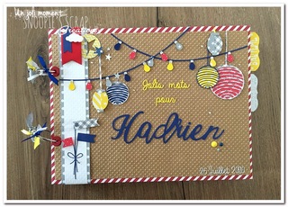Bonjour, voici le livre de naissance de Nolan, sur la base de celui de Florent, mais avec un autre tissu de fond. ♥ Couleurs :  bleu roi, bleu nuit, bleu clair , jaune clair & pâle, blanc & gris Fil conducteur : étoiles,  fanions, nuages, chevrons, pois… ♥ Le mot de Marie : « Bonsoir J’ai bien… Lire la suite Livre de naissance Nolan