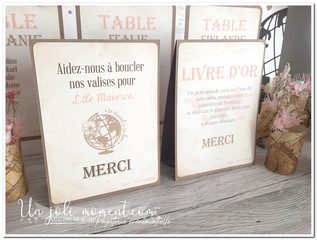 Pour changer du cadre en verre, voici 2 supports avec carton invitant à laisser un mot sur le livre d’or pour l’un, et carton invitant à participer à la tirelire pour partir en voyage de noces, pour l’autre, voici 2 cadres livre d’or/urne, assortis au reste de la décoration du mariage de Laurène & Alexandre… Lire la suite Cadres pour table livre d’or & urne – Mariage & Baptême – L&A + M&I
