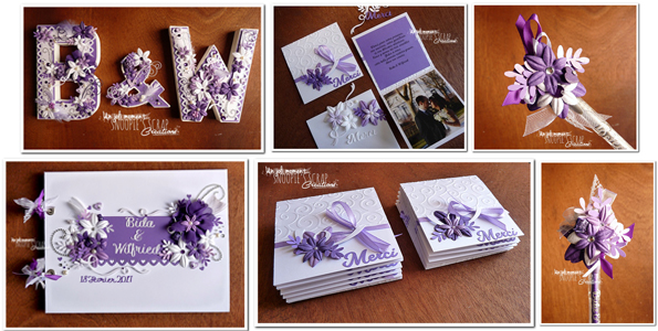Mariage Laetitia & Axel – L’ensemble des réalisations. Récapitulatif des éléments déjà montrés. ♥ Couleurs : Tons de blanc naturel, parme & lilas et touche de violet Thématique : Fleurs séchées, feuillages, arabesques, romantique, nature, champêtre ♥ L’ensemble : Les faire-part : Les menus : Le livre d’or : Le cadre annonçant le livre… Lire la suite ENSEMBLE – Mariage Laetitia & Axel