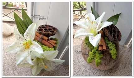 Bonjour, Lorsque j’ai réalisé le porte-alliances exotique d’Anaïs & Alexis, j’avais fait 2 autres essais, dont un trop grand, qui peut servir de décoration de table ou décoration de table de livre d’or/tirelire/cadeaux invités, dragées… etc. Le 1er présenté peut être porté dans la main: Le second, plutôt en décoration de table : A bientôt!… Lire la suite Porte-alliances & Décoration Exotique