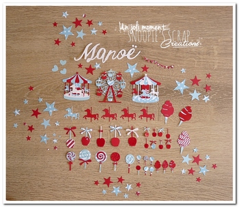 Bonjour, pour compléter avec sa décoration de Baptême, voici des décorations supplémentaires, toujours dans la même trame que le restant des créations de Manoë. * Couleurs : Bleu clair, rouge & blanc (rayures rouge & bleu) Fil conducteur : Fête foraine ♥ Le mot de Justine : « Bonjour Sophie, Je suis plus que satisfaite.C’est exactement ce… Lire la suite Papeterie – Décoration diverse – Manoë