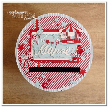 Bonjour, Aujourd’hui je vous présente l’urne tirelire ronde de Manoë, assortie au reste. ♥ Couleurs :  Bleu clair, rouge & blanc (rayures rouge & bleu) Thématique :  Fête foraine ♥ Le mot de Justine : « Bonjour Sophie, Je suis plus que satisfaite.C’est exactement ce que je voulais.Les couleurs et tout ça, c’est parfait! Merci à… Lire la suite Tirelire Manoë