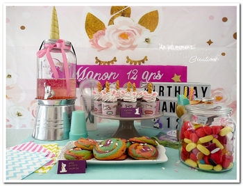 Bonjour, bientôt ses 13 ans, ca se prépare :p En attendant, voici enfin sa « réception » pour ses 12 ans, l’an dernier! Couleurs : des couleurs mais en douceur : aqua, jaune, rose, prune & or Fil conducteur : Licornes! ♥ La miss m’a beaucoup aidé! Notamment pour la pinata, les cupcakes & les crottes de… Lire la suite Sweet table licorne – Manon (12ans)