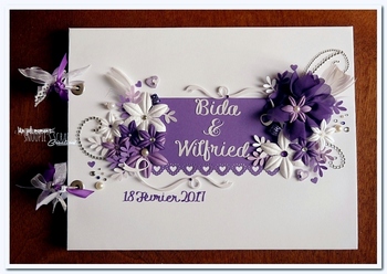 Bonjour, On reste dans les tons violets avec le livre d’or de Bida & Wilfried, offert par la maman de ce dernier, en surprise 🙂 Un livre d’or épuré et léger, sur la base de celui de Deborah & Anthony (mais dans des tons plus foncés). ♥ Couleurs : violet & blanc Thématique : romantique… Lire la suite Livre d’or Bida & Wilfried