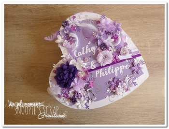 Et je termine avec la tirelire / urne / boîte à rêves / boîte à voyage de noces de Cathy & Philippe, à l’occasion de leur mariage. ♥ Couleurs : Tons de blanc, parme & violet Thématique : fleurs, feuillages, arabesques, strass, perles, romantique, papillon, plumes ♥ ♥ Le mot de Cathy & Philippe au… Lire la suite Tirelire – Mariage Cathy & Philippe