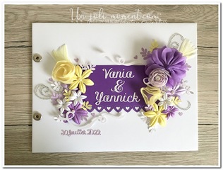Bonsoir, voici le livre d’or de Vania & Yannick, sur la base de celui de Bida & Wilfried, dans d’autres tons. Couleurs : parme/lilas, jaune pastel & blanc Thématique : romantique : coeurs, strass, perles, rubans, noeuds, fleurs… ♥ Tout d’abord, l’image d’inspiration (envoyée par la mariée) : A voir également, Les initiales des mariés… Lire la suite Livre d’or de mariage – Vania & Yannick
