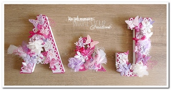 Bonsoir, ce soir, les initiales décorées des lettres A & J, d’Amélie & Jonathan ♥ Couleurs : rose clair, rose fushia, blanc & parme Thématique : papillons, fleurs, cage à oiseaux ♥  Retrouvez les autres réalisations assorties en cliquant sur l’ image ci-dessous, vous aurez alors accès à chaque création: Le mot d’Amélie : « Tout… Lire la suite Initiales Amélie & Jonathan
