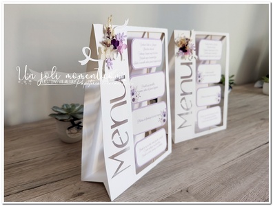 4 - Papeterie de table, décoration & cadeaux·6 - Papeterie & décoration de table et sweet table·8 - Menus & Noms de table·ANNIVERSAIRE·BAPTEME & COMMUNION·Blanc & ivoire·COUPLES & MARIAGES·Fleurs, orchidées, bulles·Les menus·Menus & noms de table·Naturels, kraft, taupe·Papillons & oiseaux·Parme, violet & prune·Printanier, champêtre, nature·Romantique, féérique...