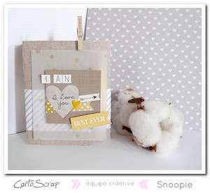 Bonjour, merci pour votre message au sujet du livre d’or! 🙂 J’espère que les mariés auront eu plein de petits mots! J’en ai d’autres à vous montrer! Mais aujourd’hui: Le premier min album sur notre mariage ♥ Que vous pouvez également voir sur le blog Cartoscrap: J’aime beaucoup le bois, quand j’ai vu ce support… Lire la suite mini album LOVE – Sophie & Nicolas
