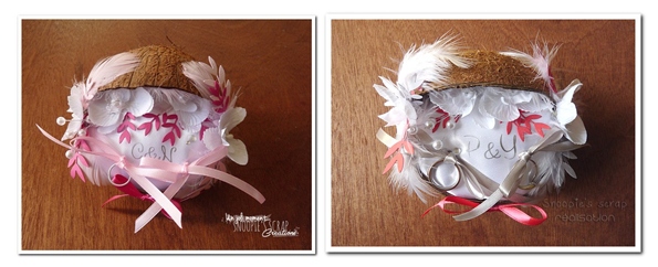 Bonjour, je continue & termine par le porte-alliances de Leïla & Rudy. Sur la base de celui d’Anaïs & Alexis, mais dans une 1/2 noix de coco. Le mot de Leïla : « Bonjour Sophie, Merci beaucoup pour votre travail et votre rapidité. Vous faites vraiment un excellent travail. Je vous recommanderais à mes amis pour… Lire la suite Porte-alliances Leïla & Rudy