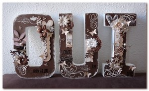 Coucou, La soeur a une de mes meilleures amies s’est mariée en juillet 2011 et m’avait demandé de lui décorer les lettres « oui » et un cadre (pour mettre à côté du livre d’or) dans les couleurs chocolat/crème Bonne journée, merci d’être passée par là!!