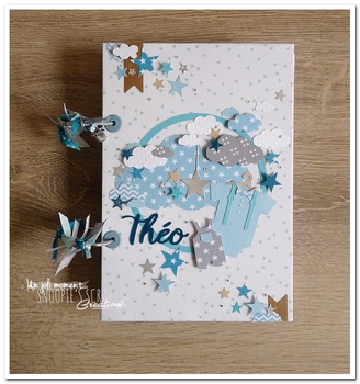 Bonjour, voici le livre de naissance de Théo. ♥ Couleurs : tons de bleus (clair, turquoise, canard, pétrole, aqua, foncé), kraft (foncé & sable), blanc, argent & gris Thématique : étoiles, nuages, petit mec, body, salopette, noeud papillon & bretelles, montgolfières… l’univers de bébé. ♥ C’est dommage, le soleil n’était pas au rdv pour les… Lire la suite Livre de naissance Théo